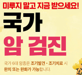 아래 우리나라 사망률 최고 6대 암검진 국가지정 건강검진부터 빠르게 확인해 보실게요~!!